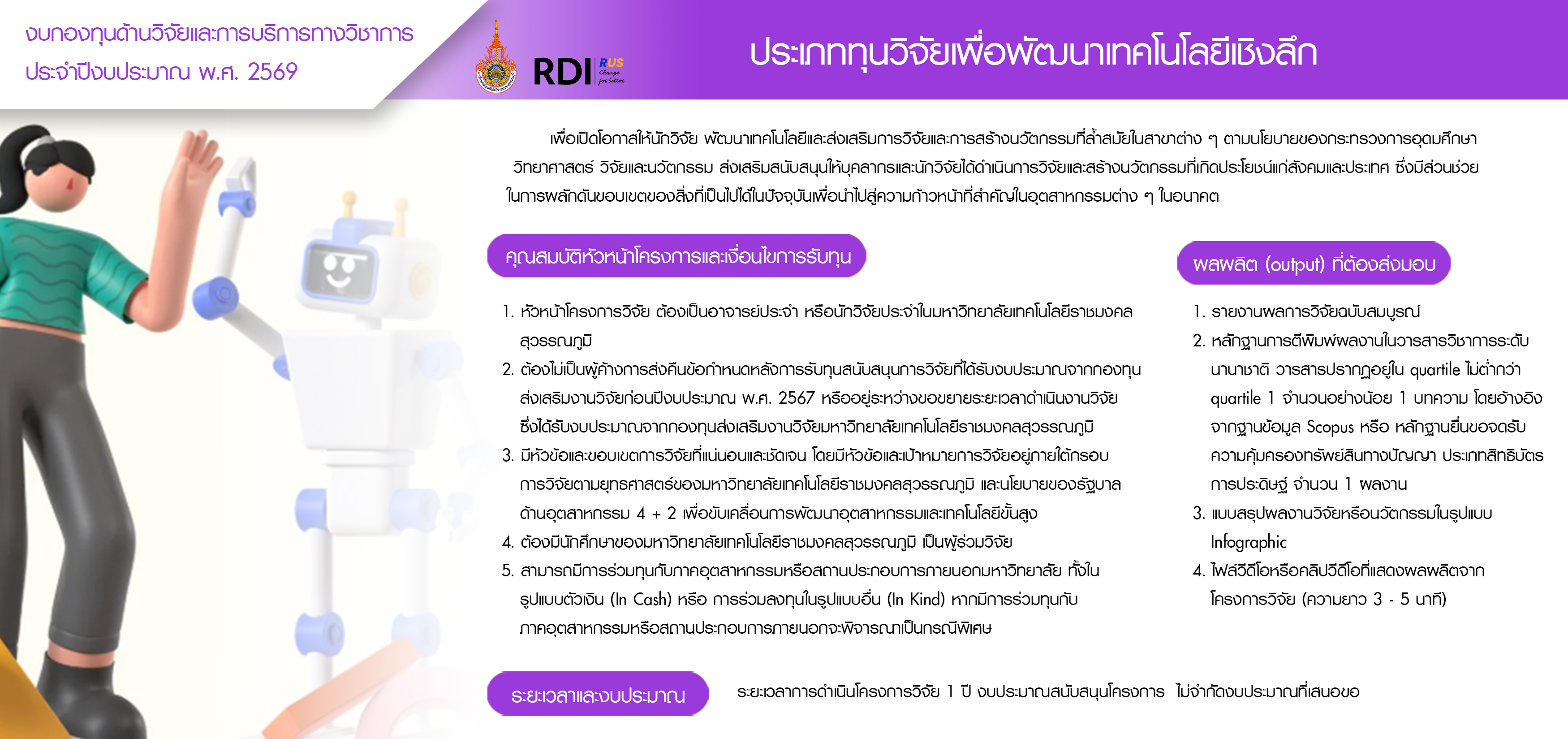 - ประกาศทุน ประเภททุนวิจัยเพื่อพัฒนาเทคโนโลยีเชิงลึก