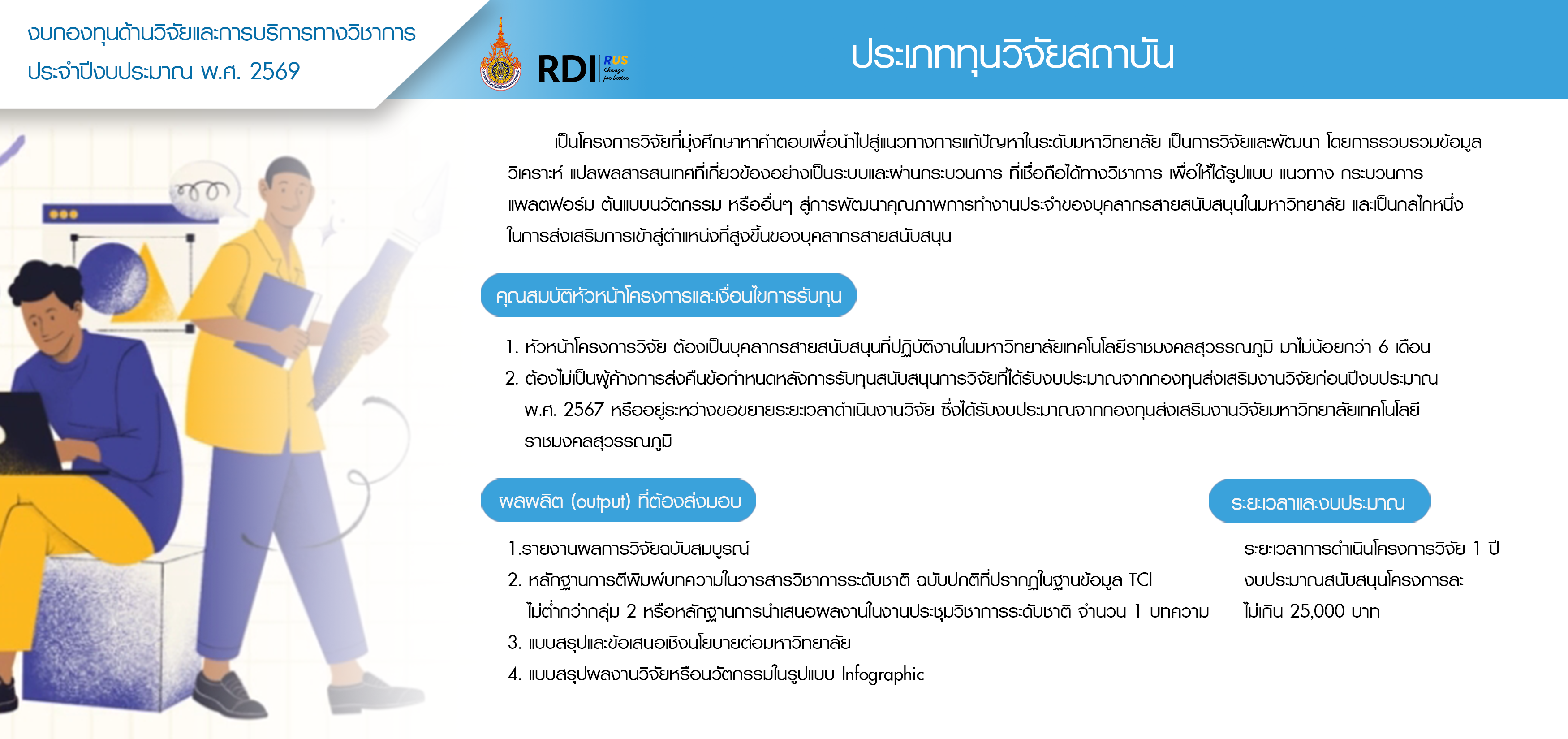 - ประกาศทุน ประเภททุนวิจัยสถาบัน