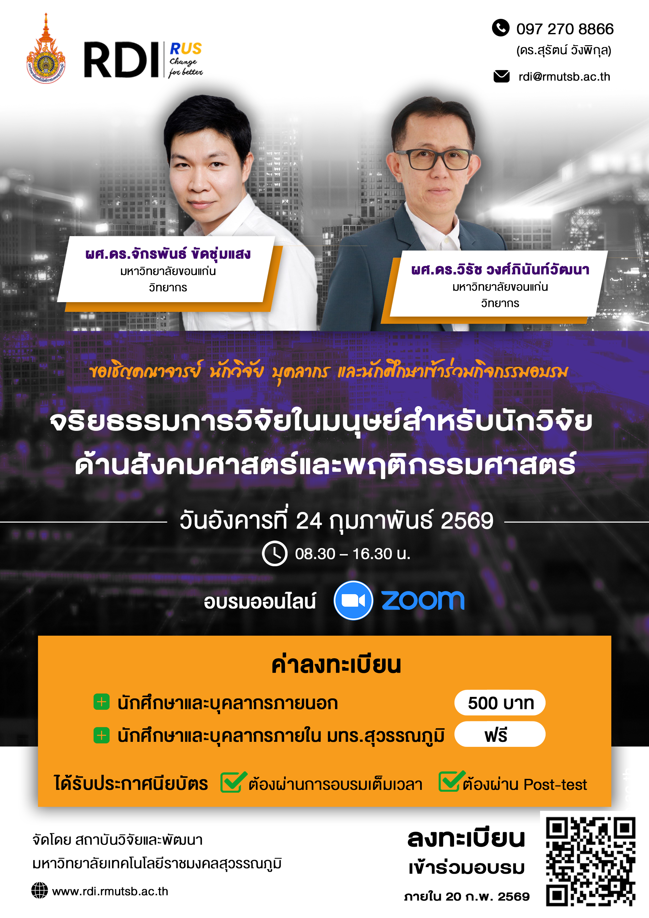 ในวันอังคารที่ 24 กุมภาพันธ์ 2569 เวลา 08.30 – 16.30 น. รูปแบบออนไลน์ผ่าน Zoom Meeting