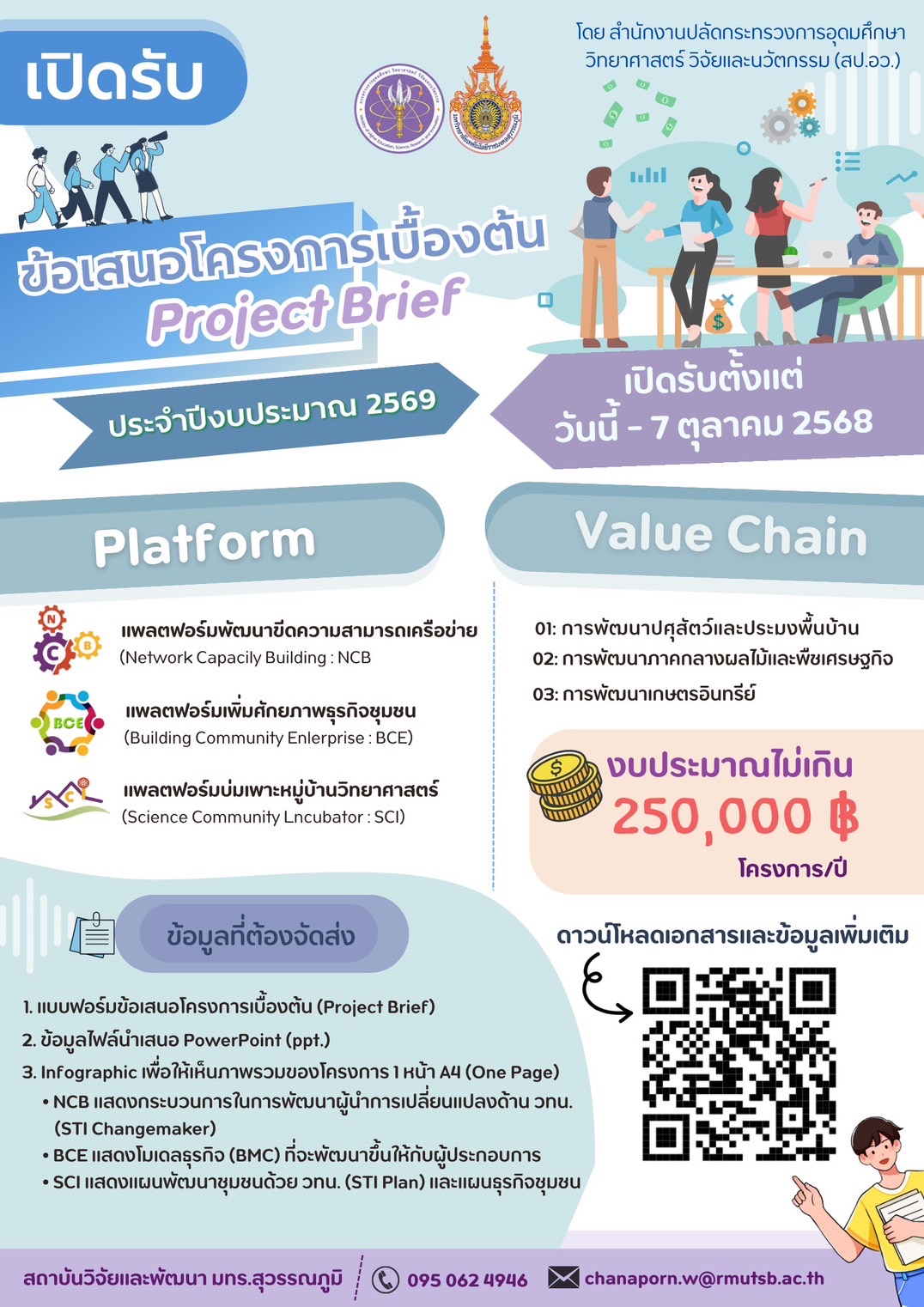 ขอเชิญชวนนักวิจัย อาจารย์ ร่วมส่งข้อเสนอโครงการ (Project Brief) ประจำปีงบประมาณ 2569