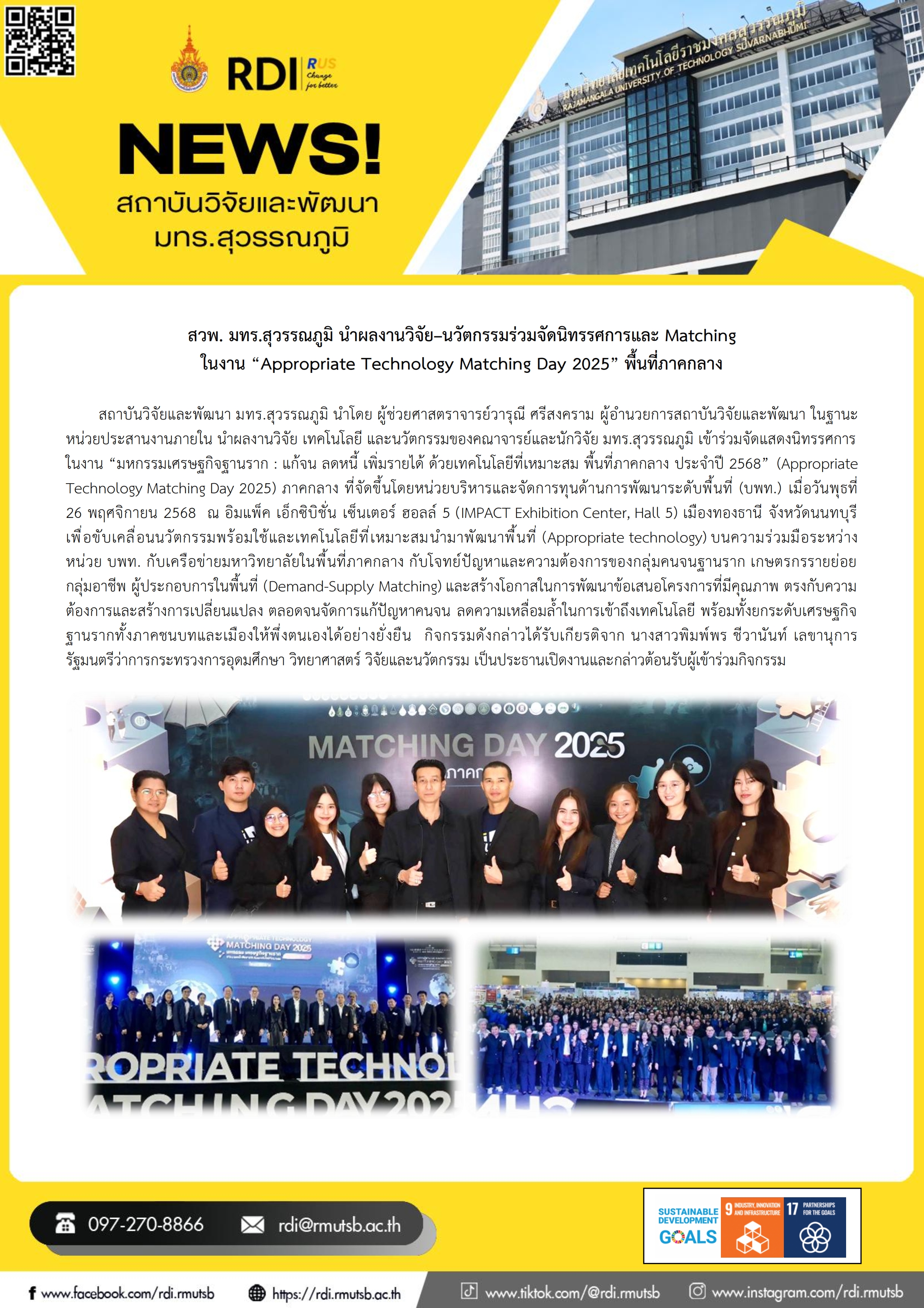 มทร.สุวรรณภูมิ นำผลงานวิจัย–นวัตกรรมร่วมแสดงในงาน “Appropriate Technology Matching Day 2025”