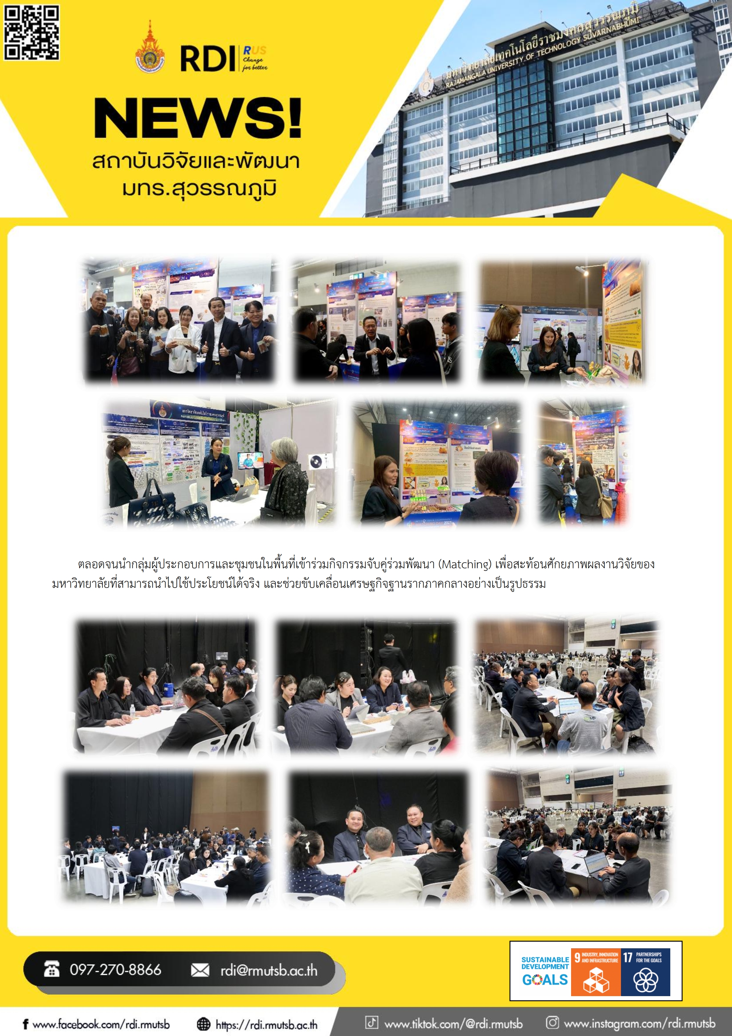 สวพ. มทร.สุวรรณภูมิ นำผลงานวิจัย–นวัตกรรมร่วมจัดนิทรรศการและ Matching